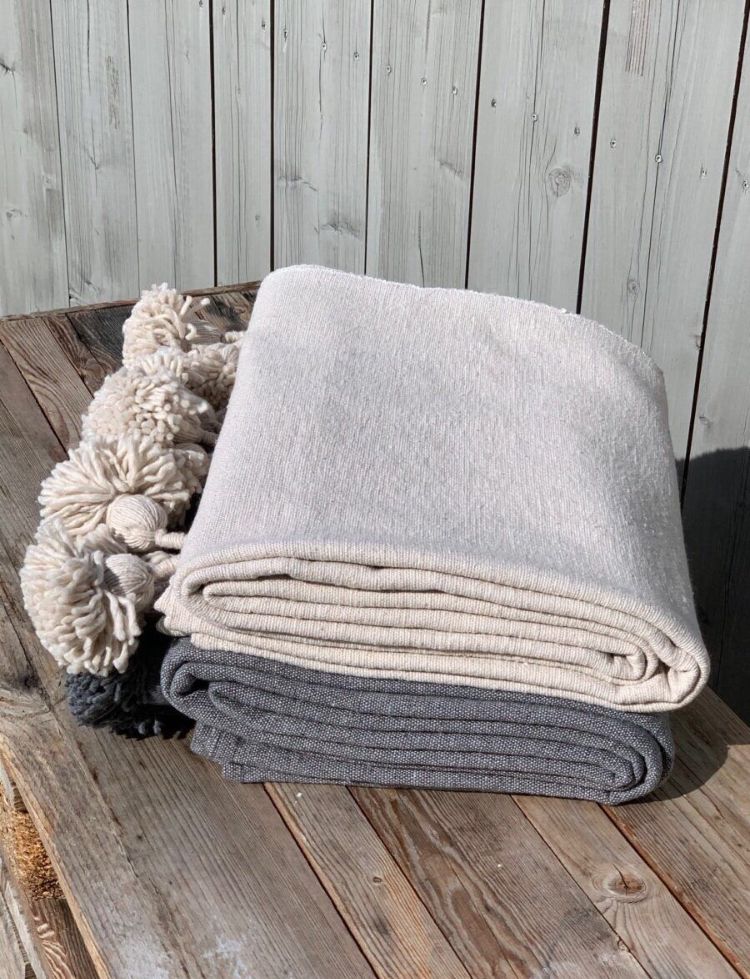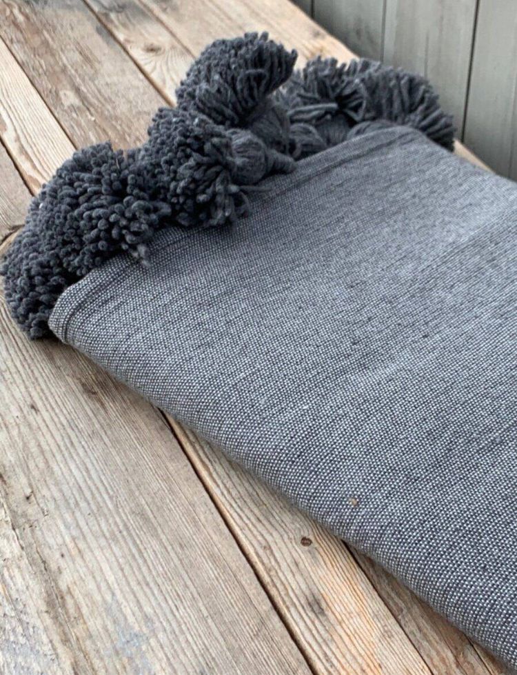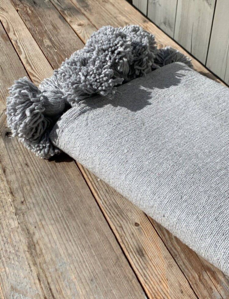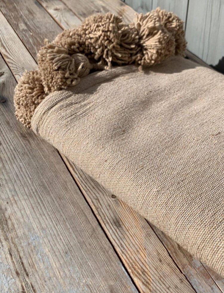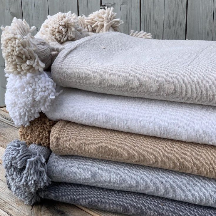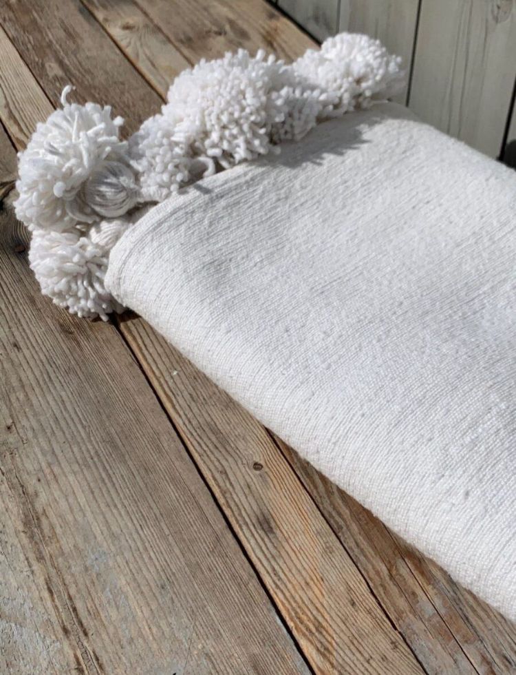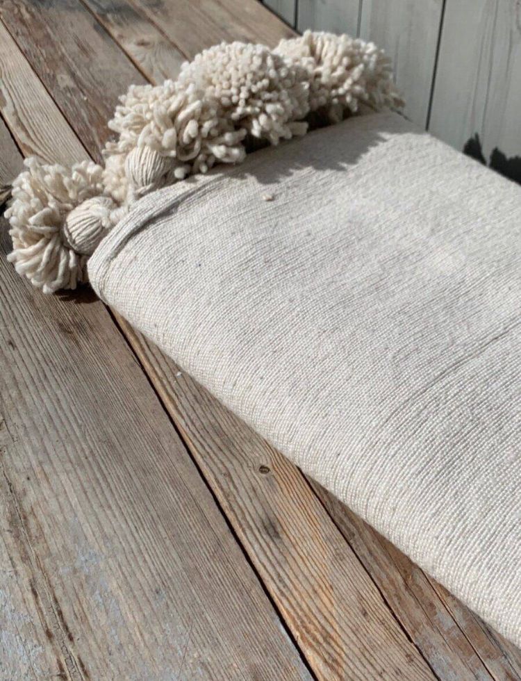 Moroccan Pom Pom Blanket, Handmade in Marrakesh, Morocco